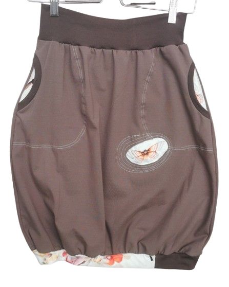 Barva/vzor: hnědá,kapsy ze vzorované látky s motýlky, jeden motýlek- našitý detail