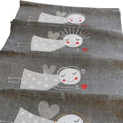 Autorská souprava běhoun a prostírání andělíčci je veselá souprava na stůl nejen na Vánoce.