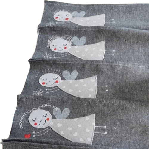 Běhoun a prostírání andělíčci s vločkou je autorská souprava běhounu a prostírání na stůl s veselými domalovanými aplikacemi andělíčků.