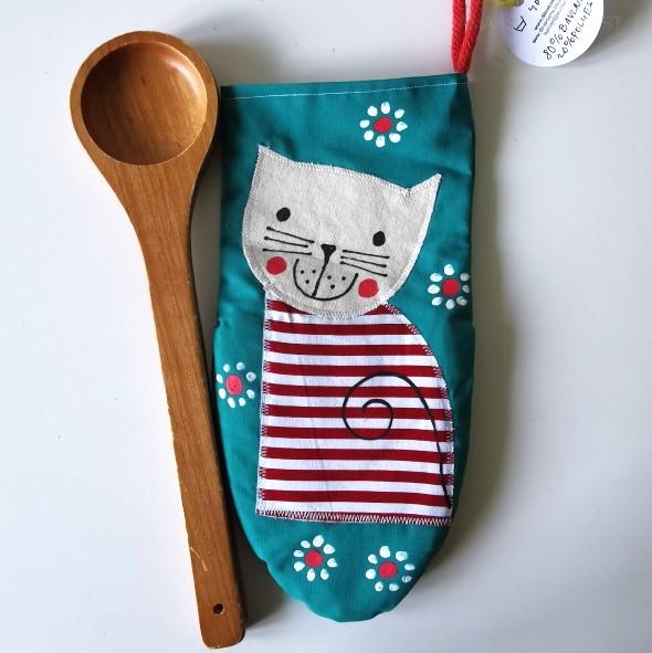 Chňapka KOČIČKA zelená, červenávyprodáno155 Kč/ ks