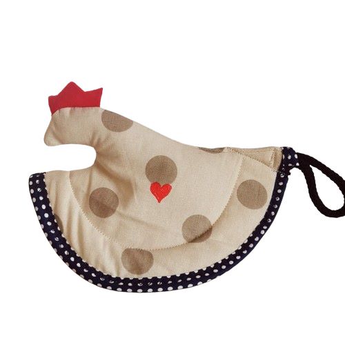 Chňapka SLEPIČKA béžový puntík je veselá a zároveň praktická dekorace do kuchyně.