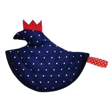 Chňapka SLEPIČKA modrá puntíčky je veselá a zároveň praktická dekorace do kuchyně.