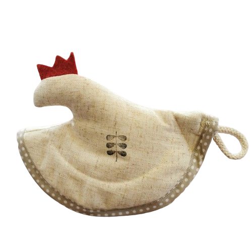 Lněná chňapka SLEPIČKA tisk, lístek béžová je veselá a zároveň praktická dekorace do kuchyně.