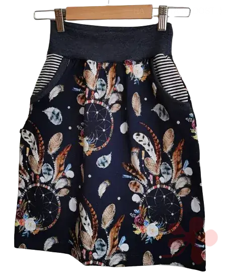 Dámská sukně PEŘÍČKA je svěží a veselá sukýnka z bavlněného úpletu.