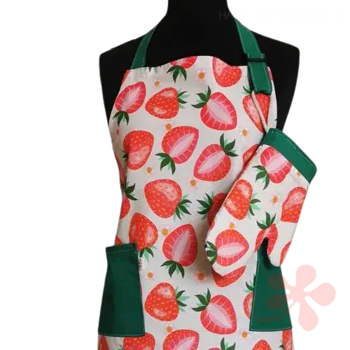 Dámská zástěra a chňapka JAHODY je veselá souprava pro kuchařku nebo pekařku.