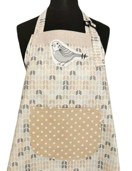 Dámská zástěra PTÁČEK je ušitá z bavlněné látky.