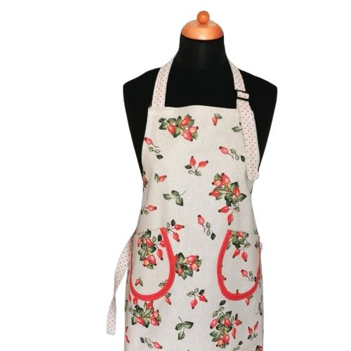 Dámská zástěra ŠÍPKY je ušitá z veselé režné látky.