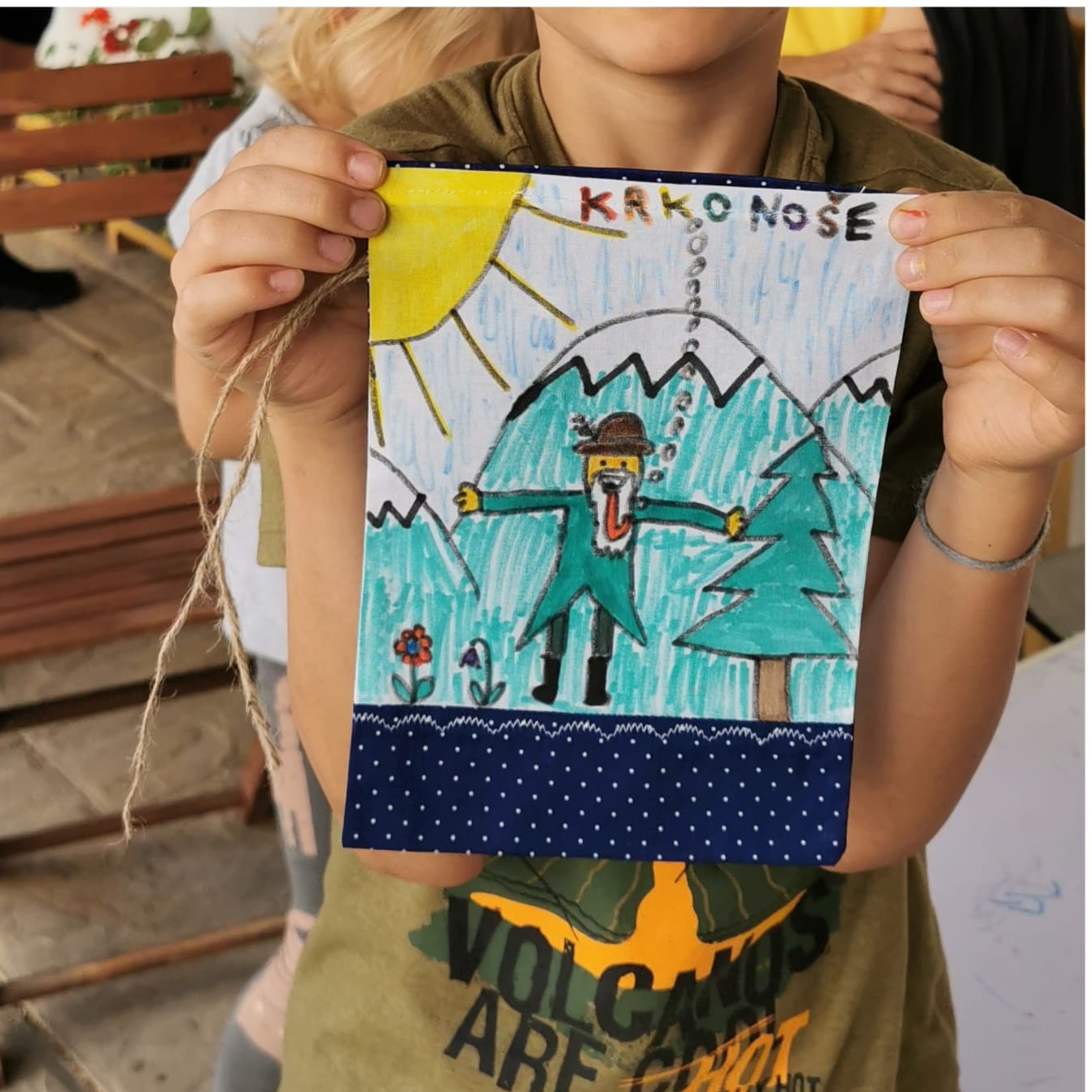 Pokud kreslíte na taštičku nebo na pytlíček či batůžek, je třeba podložit práci karonem, aby se fixy nepropsaly.
