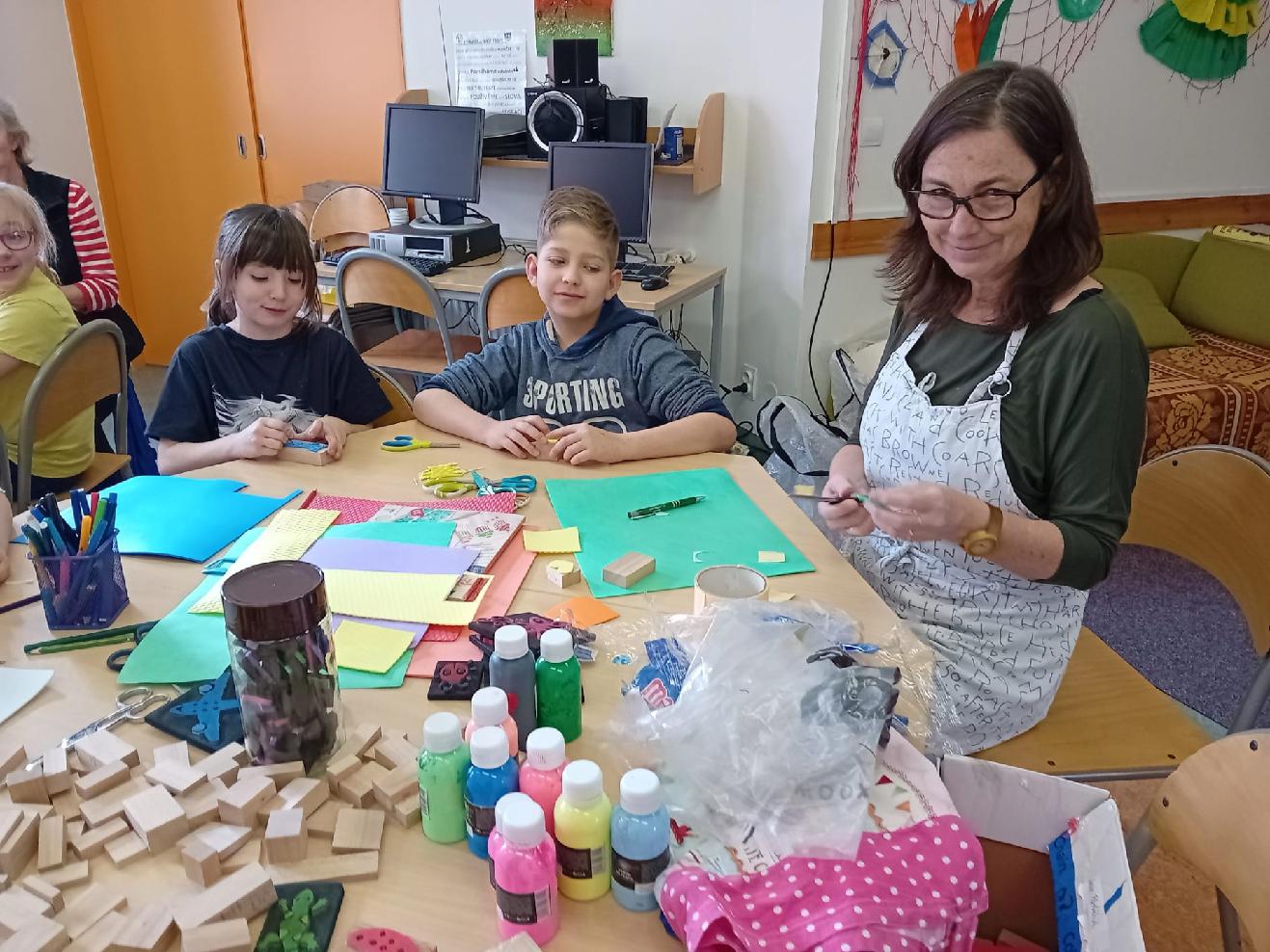 V rámci příměstského ( u nás spíš přívesnického:)) tábora jsem byla pozvaná do zdejší školy, abych uspořádala dílničku pro děti.