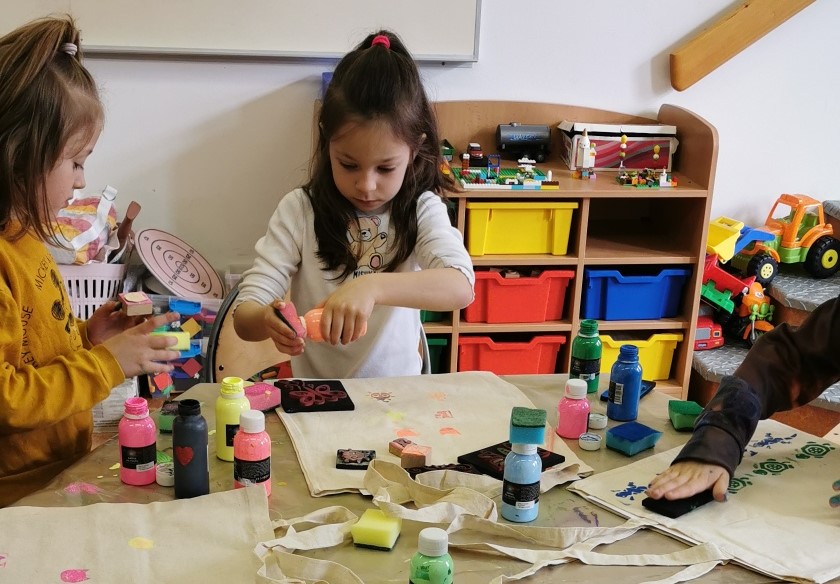 Očekávala jsem starší děti, proto nachystala náročnější tvoření. Myslela jsem, že budeme tvořit podobné tašky jako ty moje :).