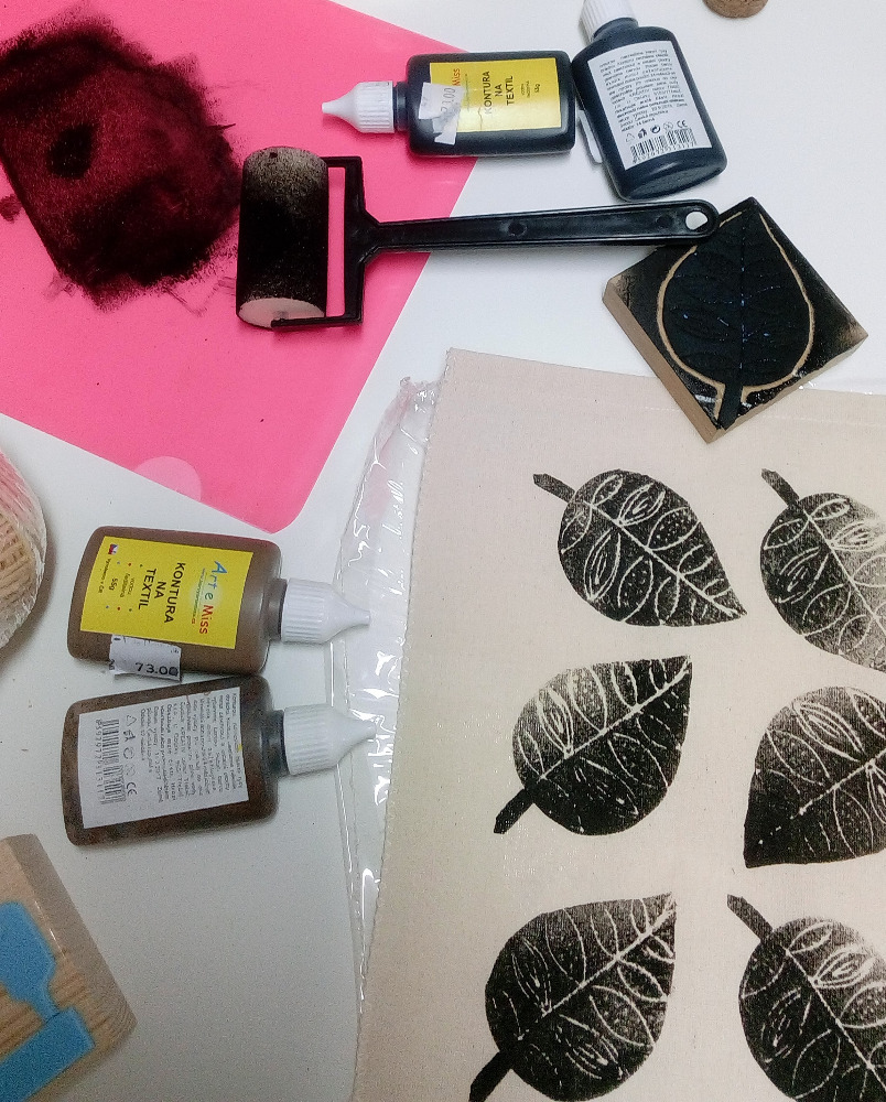 Jako dílničku jsem zvolila výrobu vlastních razítek a následný tisk na hotové tašky.