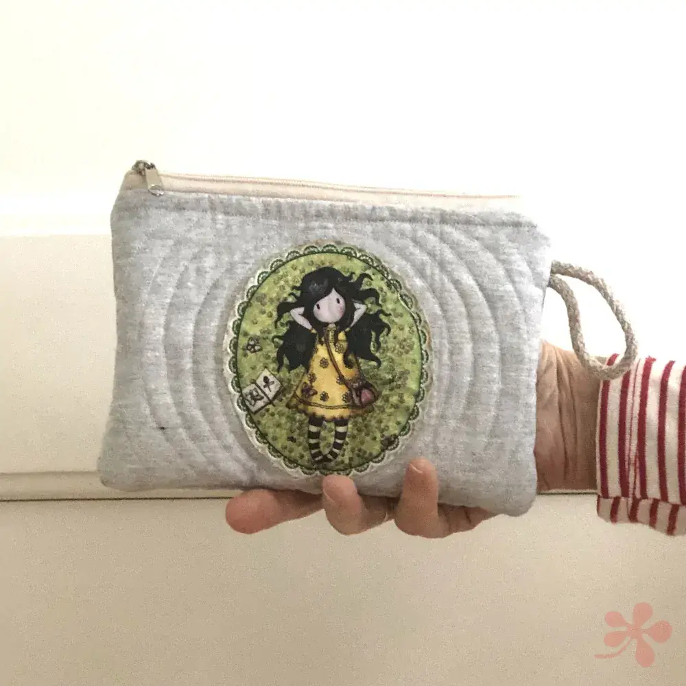 Kosmetická taštička šedá s holčičkou se hodí na šminky, hygienické potřeby, karty, drobné peníze, různé drobnosti.