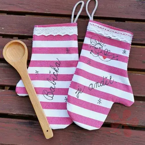 Tyto kuchyňské chňapky BABIČKA JE ANDĚL ručně malované rozveselí vaši kuchyň :).