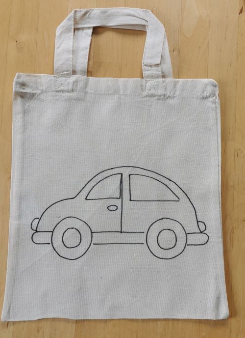 Látková omalovánka taštička AUTO VELKÉ je určena k vybarvení a domalování fixami na textil.