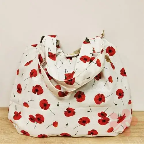 Velká taška VLČÍ MÁKY NA BÍLÉ ušitá z krásné režné silnější látky.