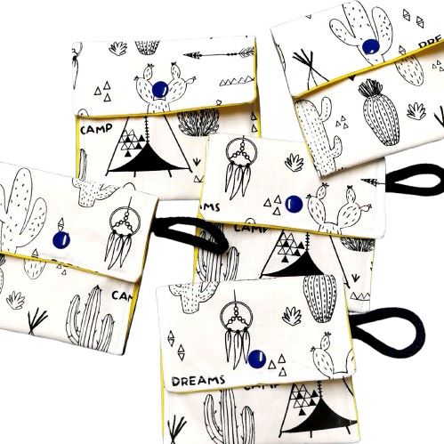 Taštička je velká cca 12x 10 cm, zapíná se na patent. Má také ouško pro lepší manilulaci nebo k pověšení.