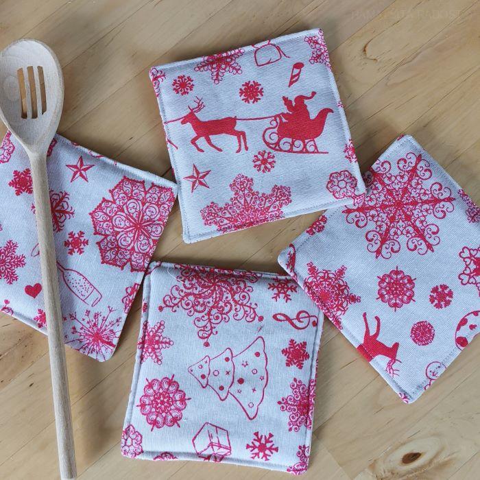 Prostírání, oboustranná podkafíčka VÁNOCE, malá sada 4 kusy, krásně ochrání stůl před kolečky od hrníčků.