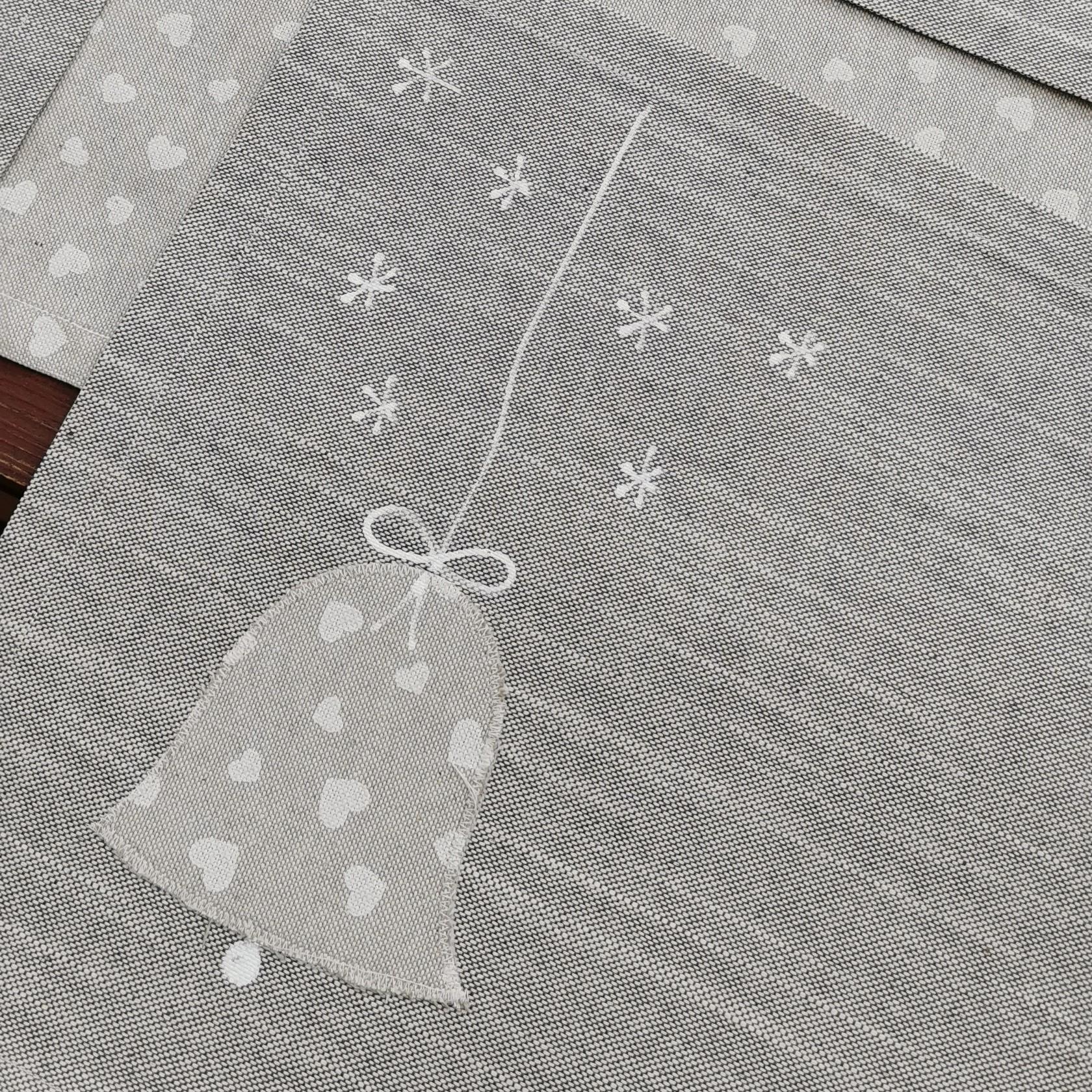 Autorské prostírání na stůl s veselými domalovanými aplikacemi zvonečků.