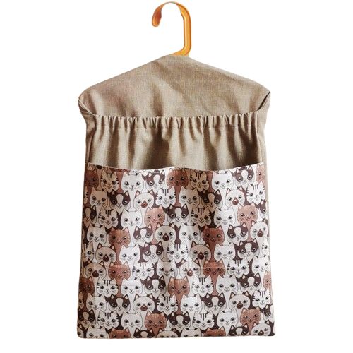 Pytel na ramínko je ušitý z pevné a lehké béžové kočárkoviny.