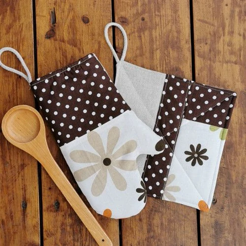Souprava chňapek HNĚDÉ- stylové a praktické pomocnice do kuchyně