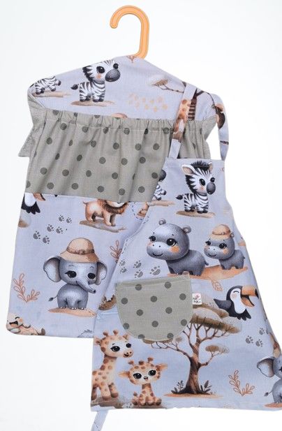 Pytel má jednu velkou kapsu na oblečení a dvě malé kapsy třeba na kapesníčky,náhradní kalhotky, hračku.....skvěle zorganizuje věci :)... ramínko se dá vyndat.