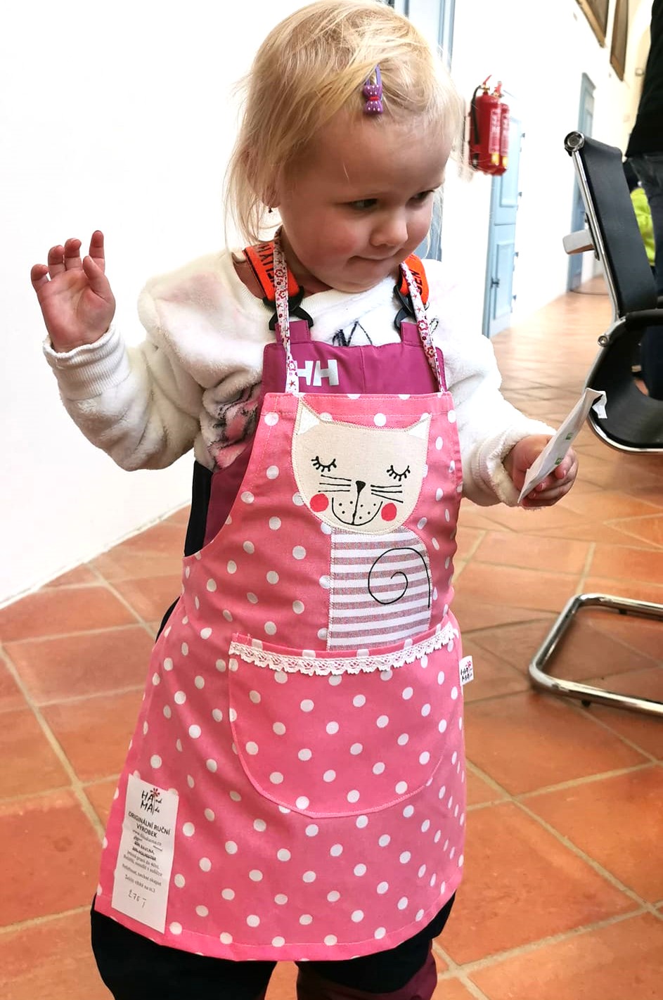 Zástěrka se mi hodí do dětské kuchyňky i na výtvarný kroužek pro předškoláčky.