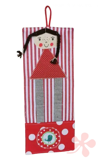 Praktický sponkovnik PANENKA TMAVOVLÁSKA na sponky, gumičky a čelenky.