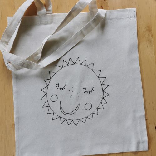 Taška k vybarvení SLUNÍČKO SPÍ je textilní taška ze 100% bavlny.