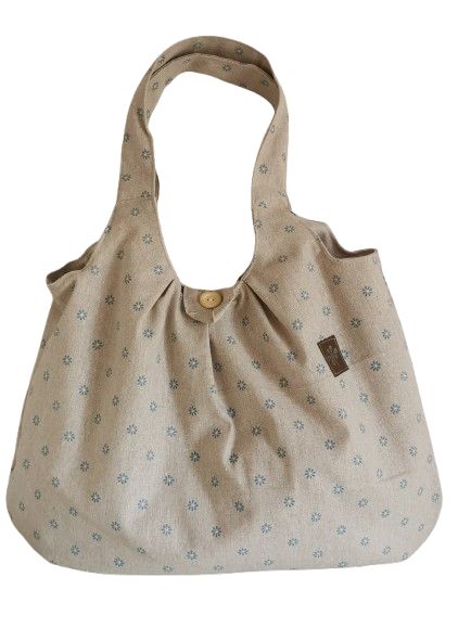 Velká taška MODRÁ KVÍTKA je ušitá z krásné režné silnější bavlněné látky.