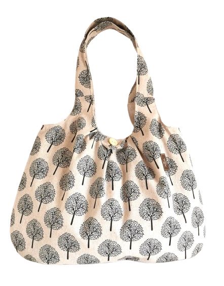 Velká taška STROMY ušitá z bavlněných režných látek.