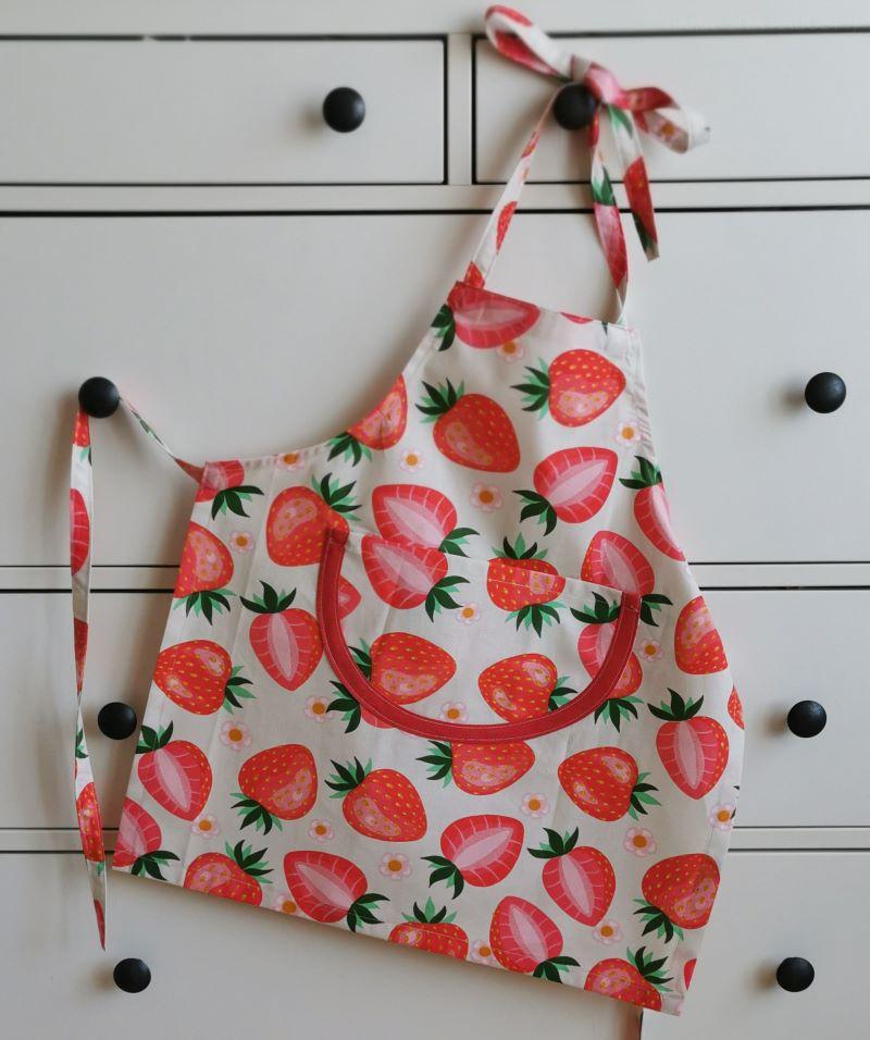 Veselá zástěrka JAHŮDKY dívčí je ušitá z bavlněného plátna.