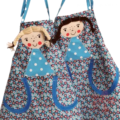 všechny zástěrky jsou šité ze 100procentně bavlněných látek, v pase i za krkem jsou zavazovací. Velikosti jsou skoro univerzální, zástěrky s dětmi" rostou".