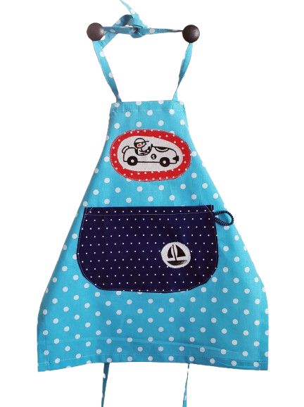 Zástěrka pro kluky puntíkatá autíčko tisk je veselá zástěrka pro kluky nebo pro holčičky, které milují auta :).